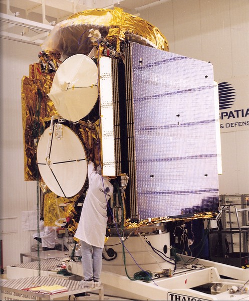 THAICOM 3 : Spacebus 3000 [document graphique à deux dimensions] / PHOTO AEROSPATIALE, Donateur . - 1997 . - : Coul. ; 20x24 cm. Gratuit Le satellite Thaïcom 3 réalisé pour Shinawatra satellite PLC de Thaïlande par Aerospatiale en fin d'intégration dans les salles blanches de Cannes. Langues : Français (fre)