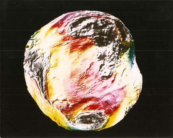 ERS-1 : Ocean Topography [document graphique à deux dimensions] / ESA, Donateur . - [s.d.] . - : Coul. ; 24x19.5 cm. Gratuit Extraordinary as it may seem, the surface, of the ocean is not flat but has hills and valleys, which follow the contours of the ocean floor; the gravitational force of the mass collected in the "mountains" of the sea floor pulls water over these mountains tops. The mean ocean surface, which on the image is represented by an illuminated relief, is therefore echoing the sea floor topography. Langues : Anglais (eng)