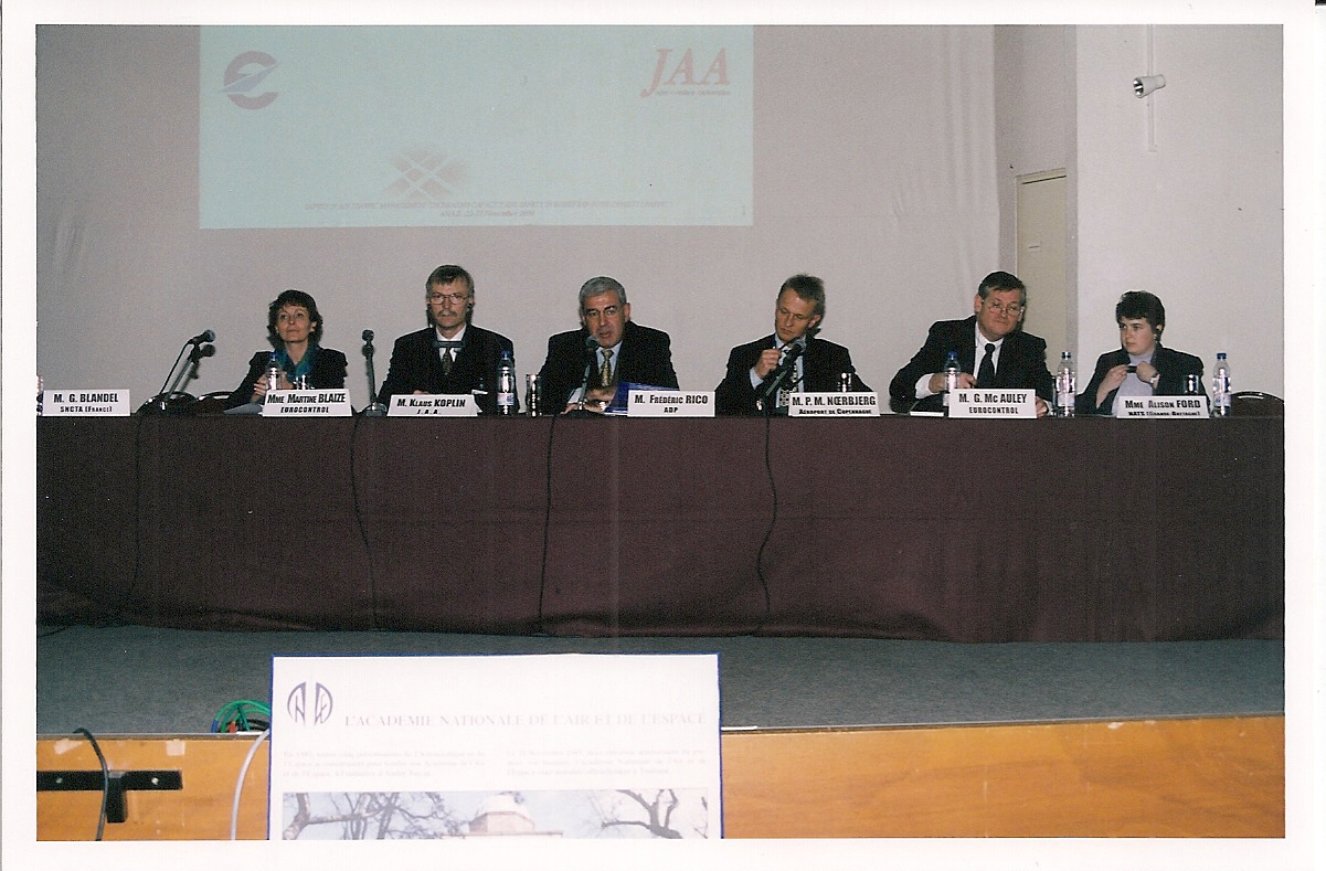 BLAIZE Martine, KOPLIN Klaus,RICO Frederic, NOERBJERG P.M, AULEY G.Mc, FORD Alison intervenants au COLLOQUE INTERNATIONAL SECURITE DE LA CIRCULATION AERIENNE : AUGMENTER CAPACITE ET SECURITE DANS LE TRAFIC EUROPEEN ? par l'Académie de l'Air et de l'Espace : 22-23 novembre 2000 Toulouse - FRANCE [document graphique à deux dimensions] . - 2000 . - : Coul. ; 10x15 cm. BLAIZE Martine (Eurocontrol), KOPLIN Klaus (J.A.A), RICO Frederic (ADP), NOERBJERG P.M (Aéroport de Copenhague), AULEY G.Mc (Eurocontrol), FORD Alison (NATS) Langues : Français (fre)