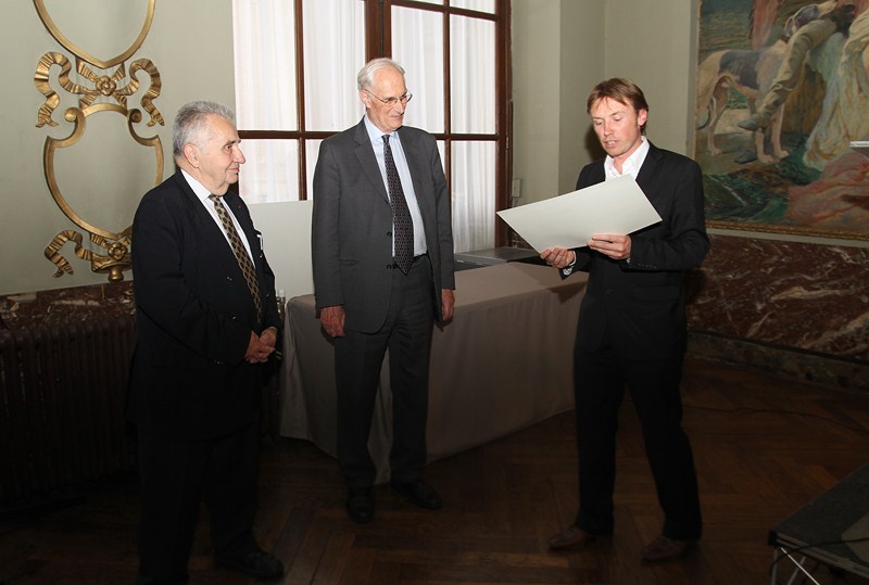in Photos des Entretiens de Toulouse 2011 / Gilbert DEVES (2011) Mr Régis Godec remettant un Diplôme d'Honneur à Mr Jean Delacarte et Mr Jacques Bouttes, lors du Cocktail des Entretiens de Toulouse 2011 [document graphique à deux dimensions] / Gilbert DEVES, Photographe . - 2011 . - : Photo numérique. Régis Godec, adjoint au Maire de Toulouse remettant un Diplôme d'Honneur de la ville de Toulouse à Messieurs Jean Delacarte et Jacques Bouttes, membres de l'Académie, lors du cocktail organisé au Capitole suite aux Entretiens de Toulouse 2011. Langues : Français (fre)