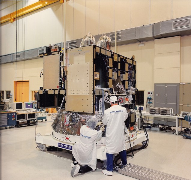 ENVISAT-1 Assembly : Negative reference No.: 1434A/2 [document graphique à deux dimensions] / MATRA MARCONI SPACE, Détenteur du copyright . - 1995 . - : Coul. ; 25x20 cm. gratuit Matra Marconi Space Assembly and Integration staff working on the ENVISAT-1 spacecraft in the preparation facility at Filton, Bristol, UK.